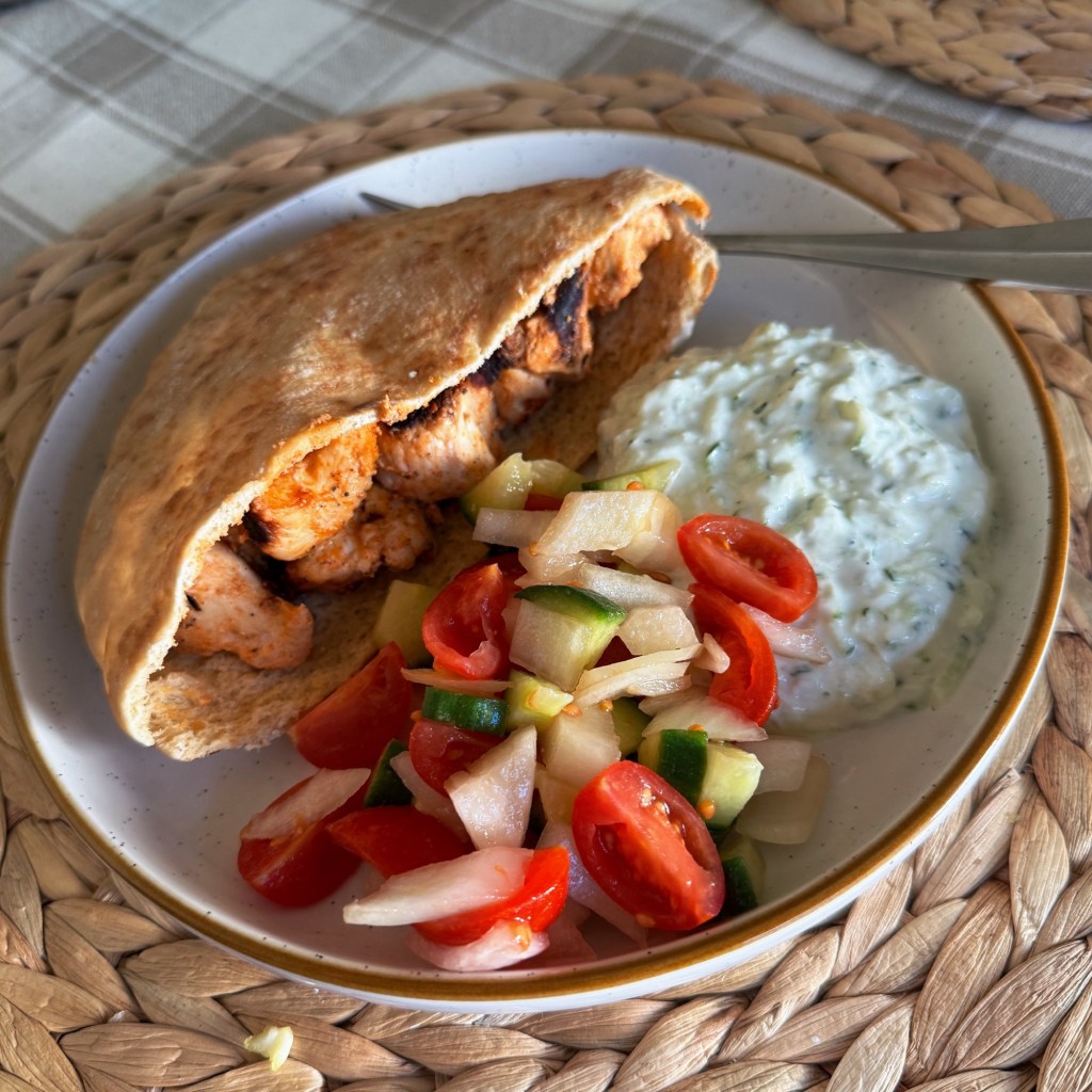 back again with another main chosen almost exclusively because it looked like it would be fire with tzatziki in a pita… and obviously it was! stamp of approval on flavor from kate and stamp of approval for being idiot-proof from faruq because he actually did (some) of the work
